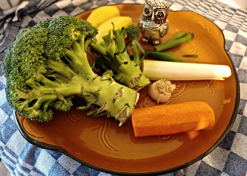 Heute blieb wieder einiges vom Gemüsekochen übrig. Ihr könnt auf dem ersten Foto sehen, was ich übrig hatte. Ja, es ist eine Menge Brokkoli, aber ich wollte unbedingt welchen im Eintopf haben, also musste der Rest schnell verarbeitet werden, da Brokkoli schnell den Geist aufgibt.